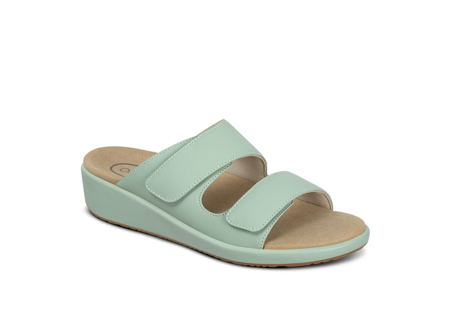 As easy on the eyes as they are on every step you take: this beautiful wedge doesn't compromise your healthy comfort or body alignment. Soft and padded inside. the two pull straps adjust a perfect fit and can open completely. Enjoy everywhere you go. with advanced Ortho-Cushionâ„¢ System support underfoot to offload walking pressure and absorb impact.
