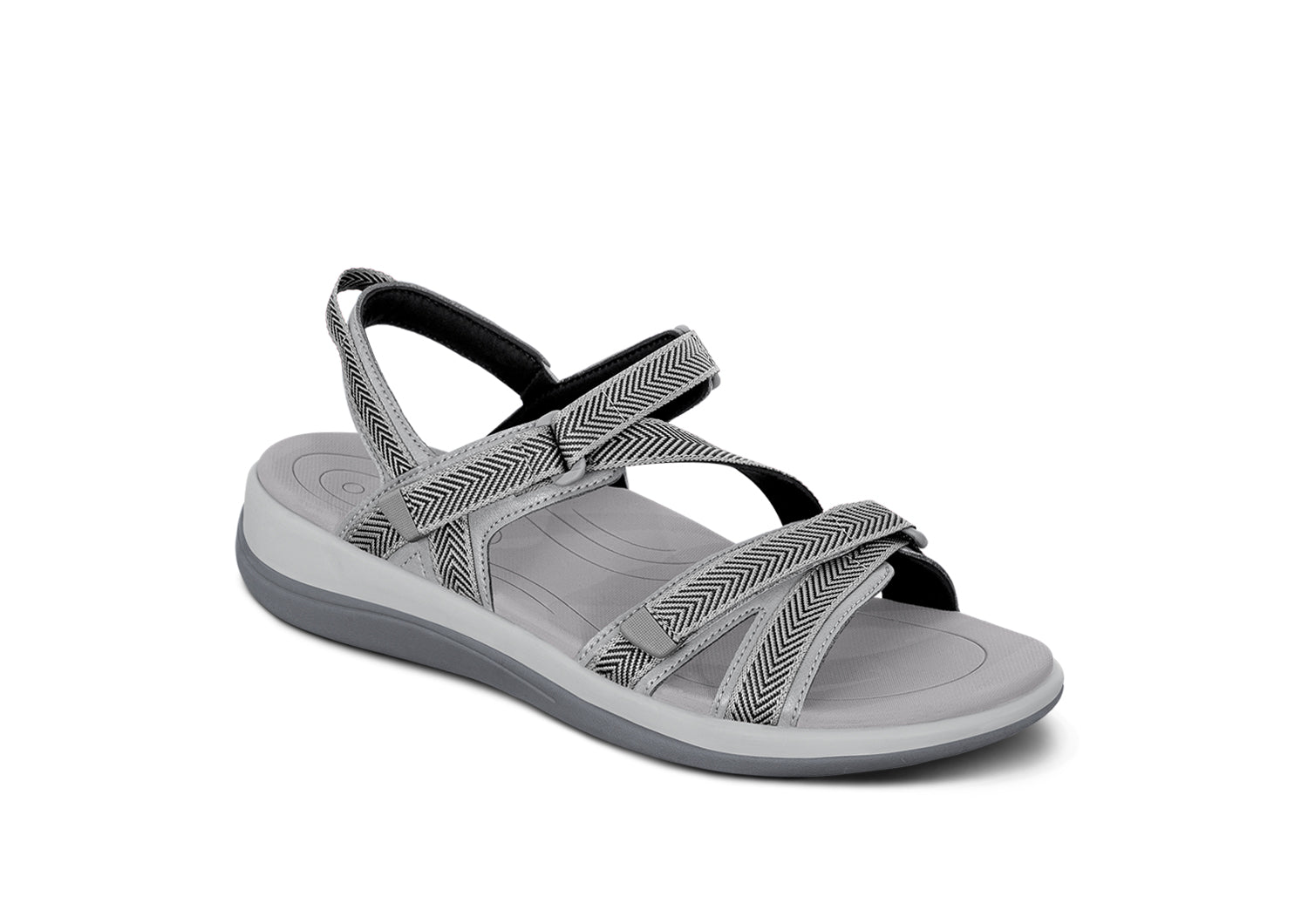 Keep every splash pain-free in these high-performance water friendly sandals. with three quick-dry. padded straps. The inset strap opens for easy on & off and adjusts on both sides. the forefoot strap adjusts too & for the perfect. secure fit. A grippy tread and supportive Ortho-Cushionâ„¢ System outsole protects every step and reduce walking impacts from heel to toe.